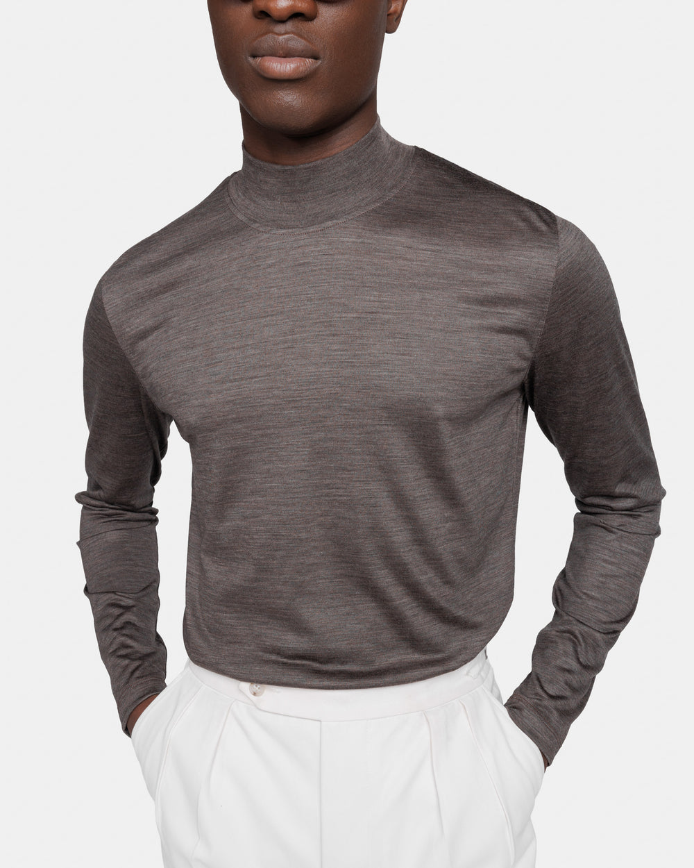 It is a valuable staple of the contemporary wardrobe. This piece reflects Filatori’s commitment to excellence, characterized by meticulous attention to finishing and detail. Visible seams under the neckline and around the shoulders add an extra touch of tailoring. The neckline is finished with a 1.8 cm high rib knit that further enhances the brilliance of the yarn.