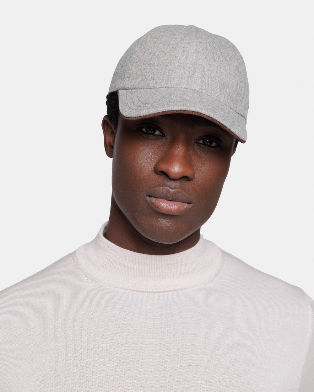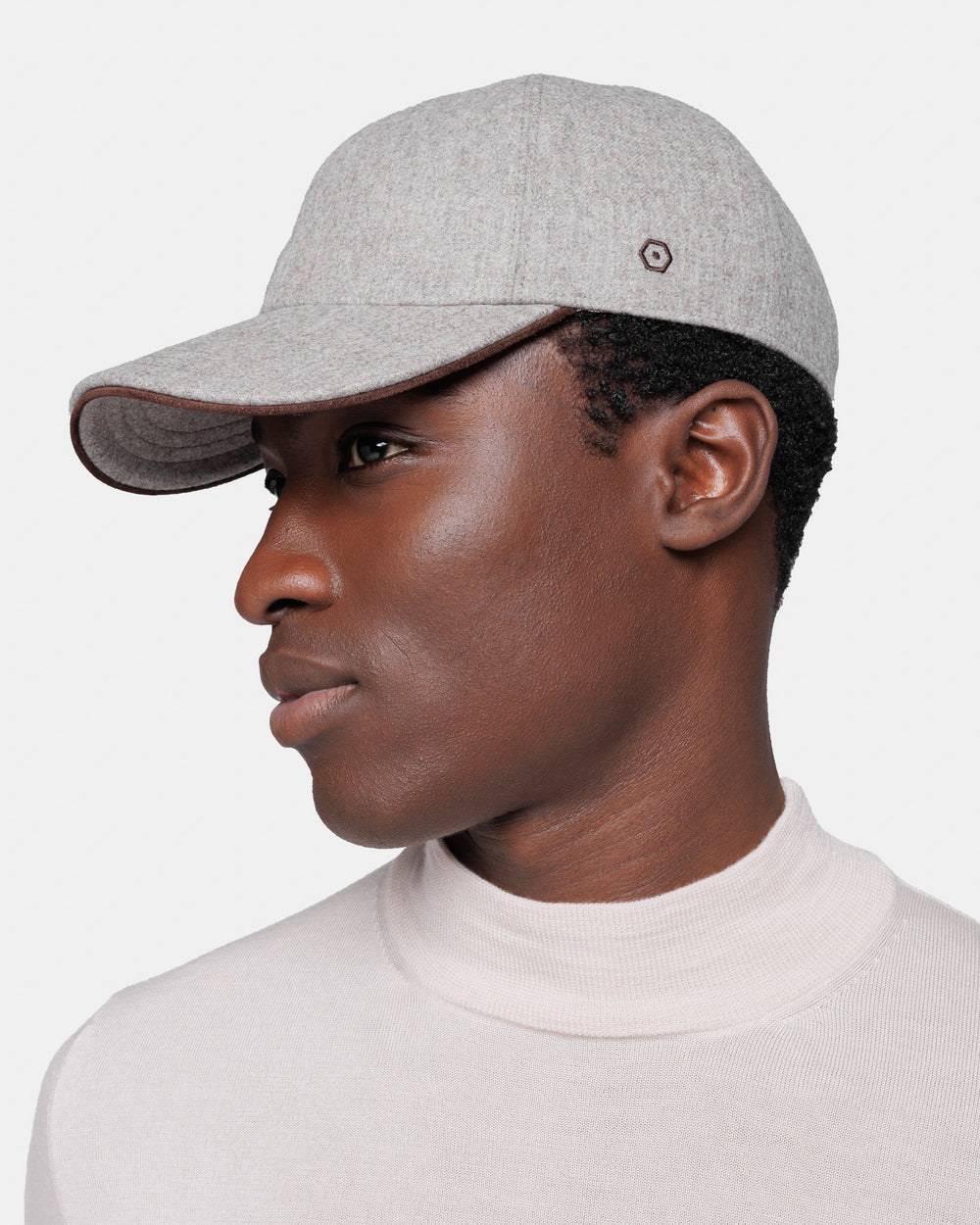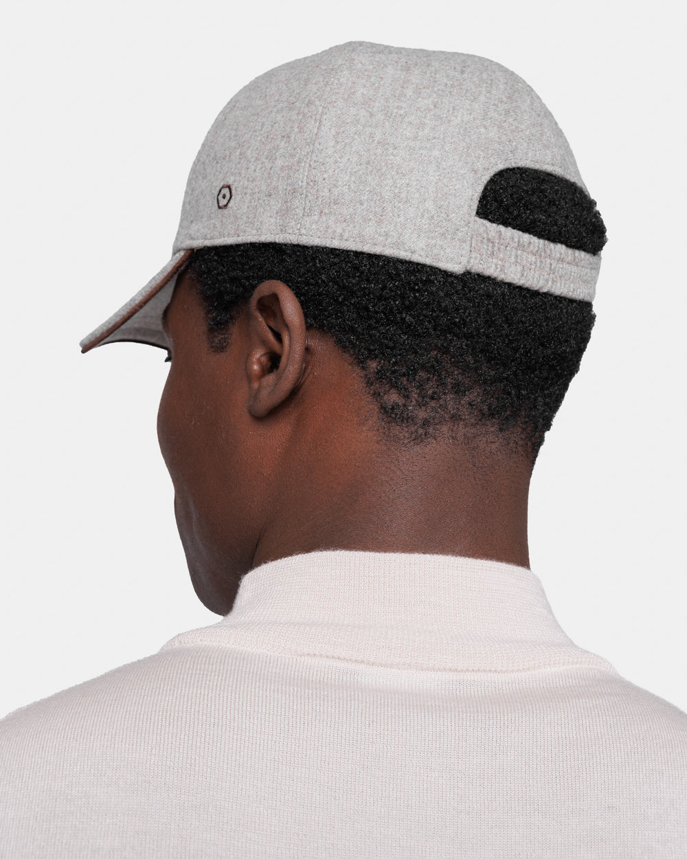 Cappellino baseball su misura a sei spicchi realizzato in pregiata flanella di Lana idrorepellente del Lanificio Vitale Barberis Canonico, simbolo dell'eccellenza del Made in Italy nella produzione di lane pregiate. Questo accessorio esclusivo combina calore, morbidezza e uno stile senza pari, offrendo una soluzione ideale per affrontare le giornate con eleganza.