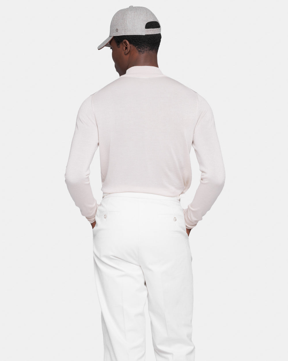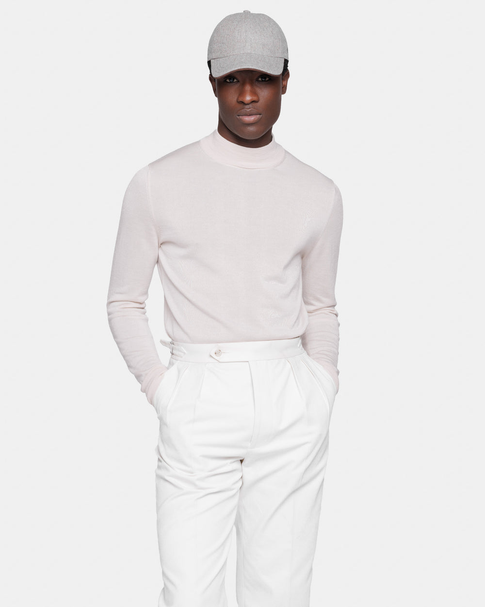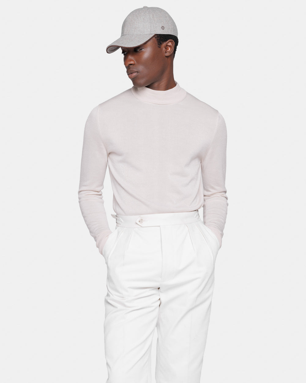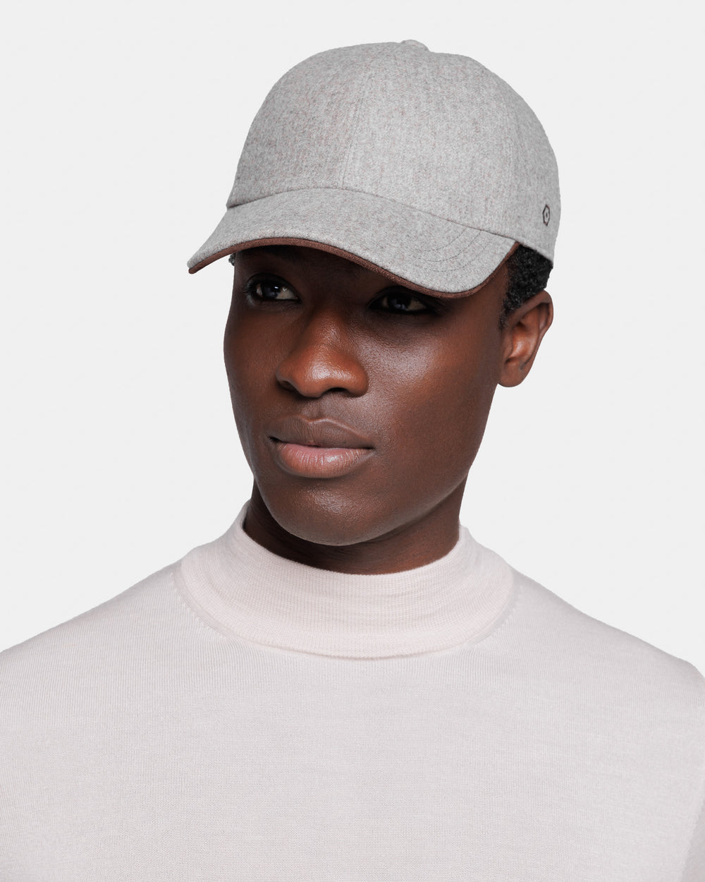 Cappellino baseball su misura a sei spicchi realizzato in pregiata flanella di Lana idrorepellente del Lanificio Vitale Barberis Canonico, simbolo dell'eccellenza del Made in Italy nella produzione di lane pregiate. Questo accessorio esclusivo combina calore, morbidezza e uno stile senza pari, offrendo una soluzione ideale per affrontare le giornate con eleganza.