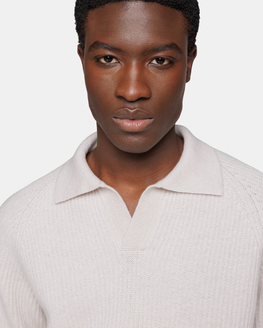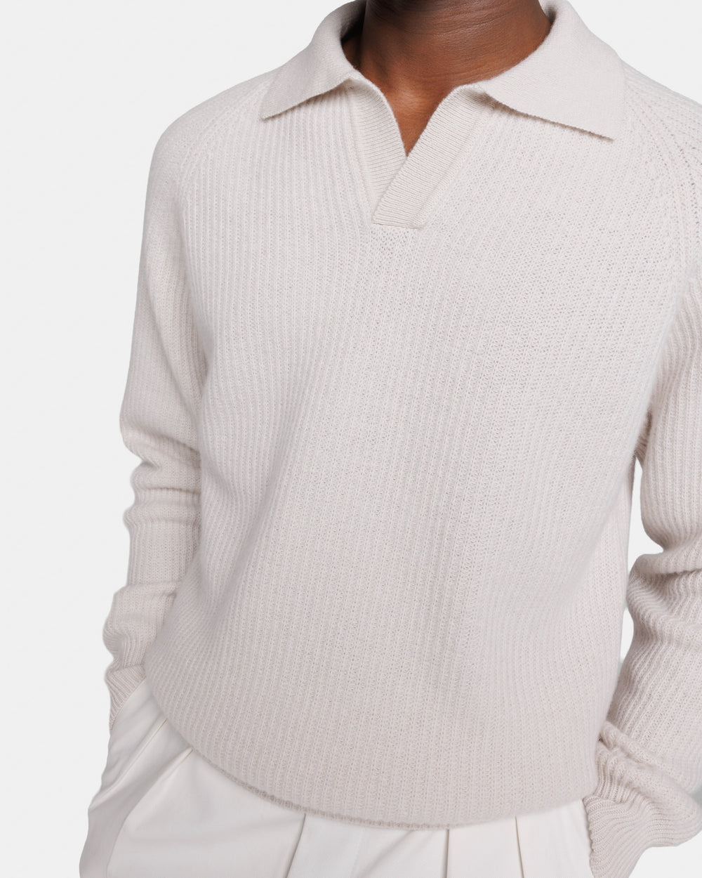 Maglia manica lunga Polo senza bottoni Meringa Lana Ultra-Soft Super 100's| Filatori